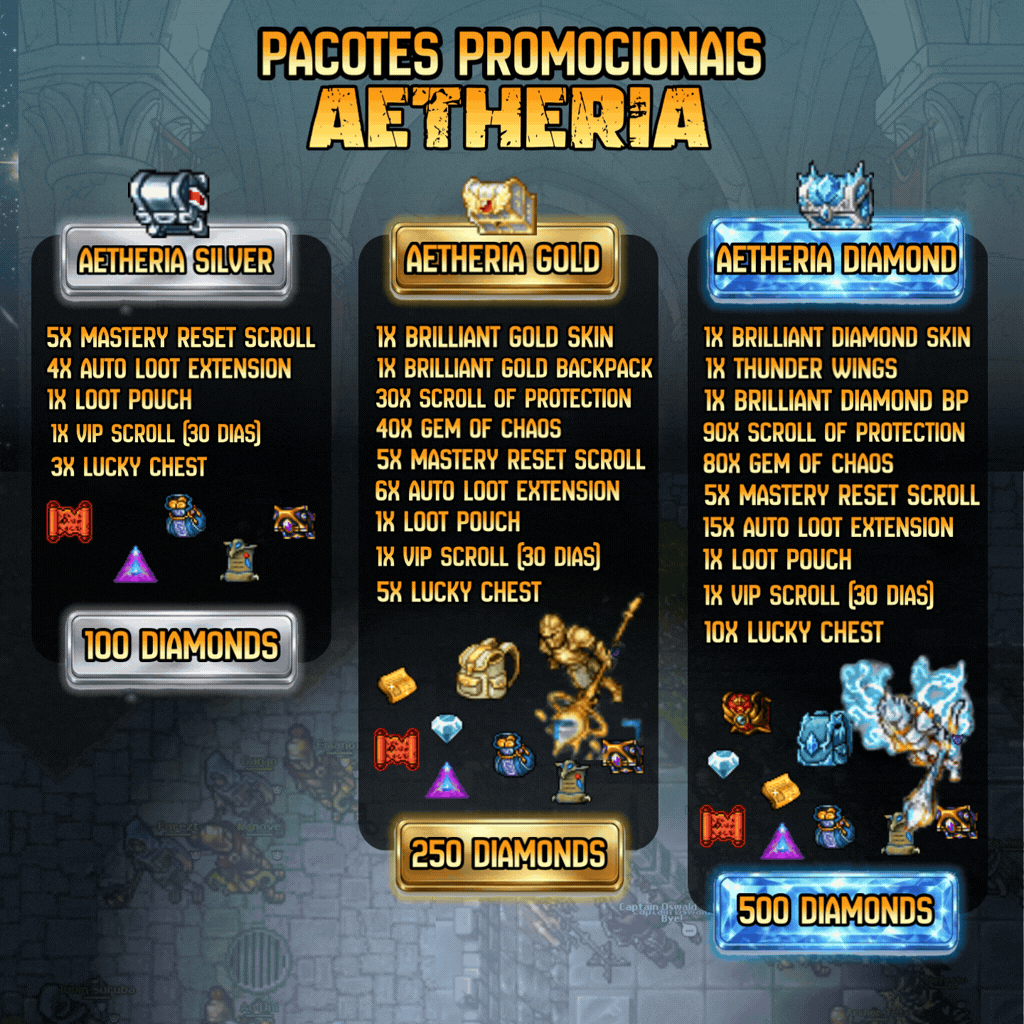 Eles estarão disponíveis por tempo limitado e após saírem da store não retornarão novamente. obs: Os diamantes da sua conta são compartilhados entre os mundos e você poderá usa-los em qualquer um dos mundos.